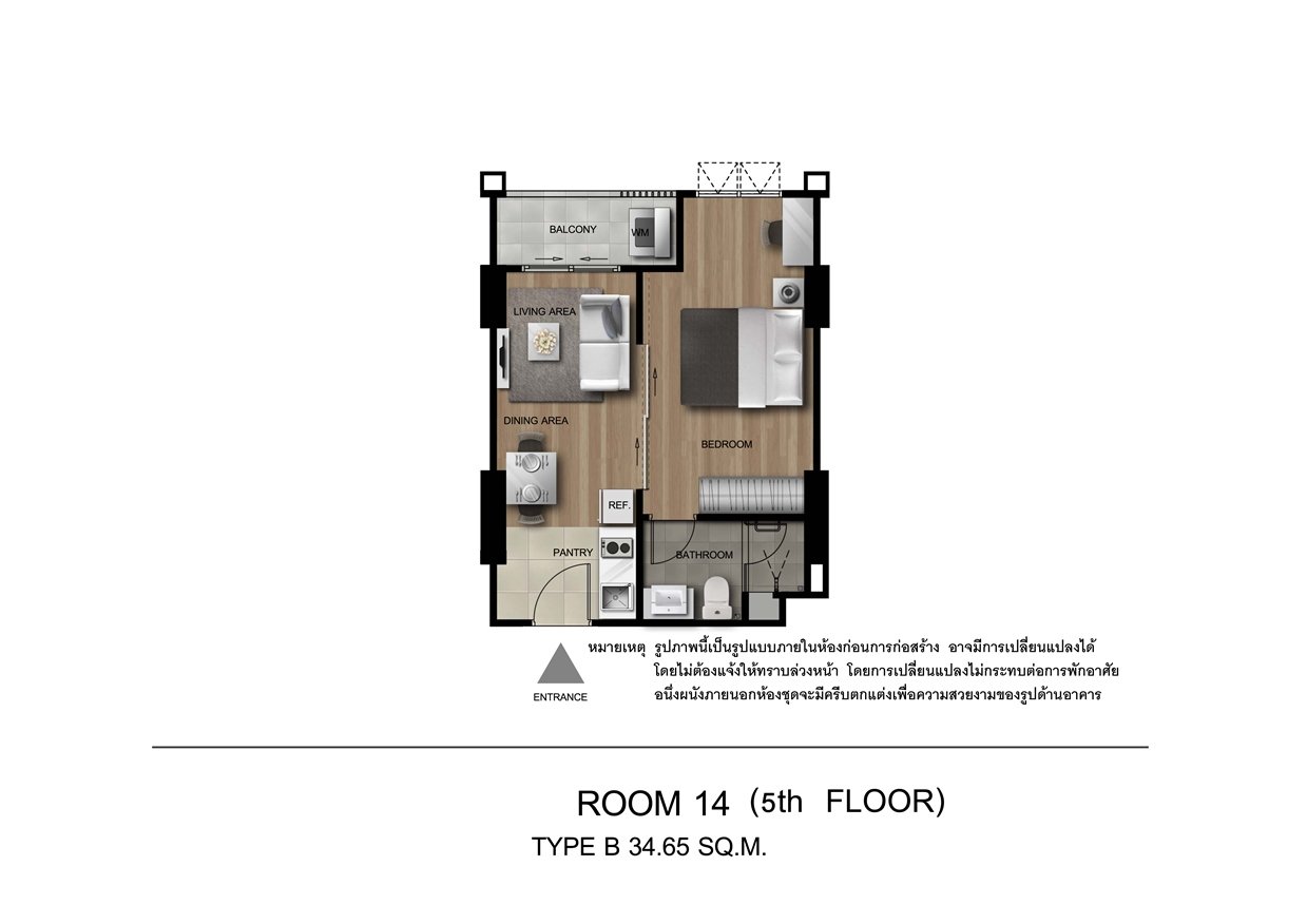 TYPE B (1 bed) : 28 – 36 Sq.m.